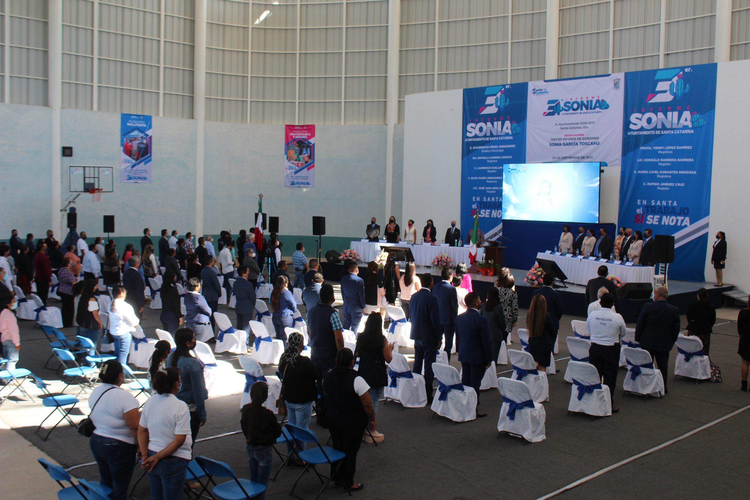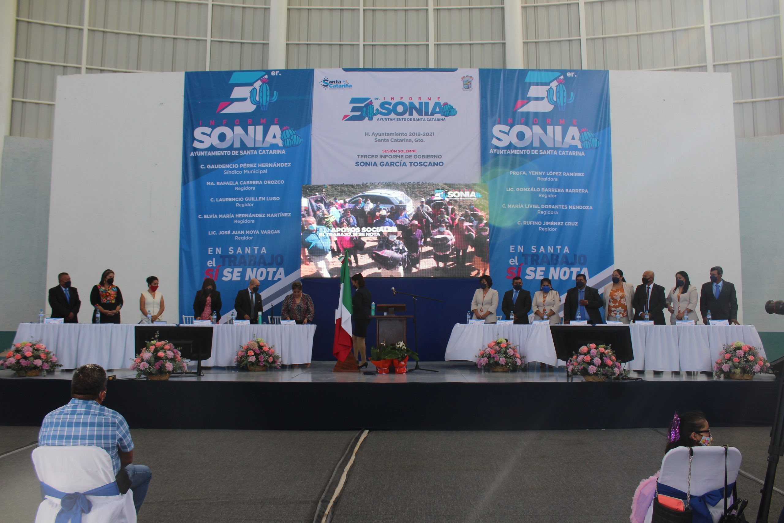 La alcaldesa de Santa Catarina, Sonia García Toscano, rindió su Tercer Informe de Gobierno en cual se realizó con todas las medidas sanitarias y con aforo controlado, en donde dio a conocer el estado que guardan las arcas municipales.