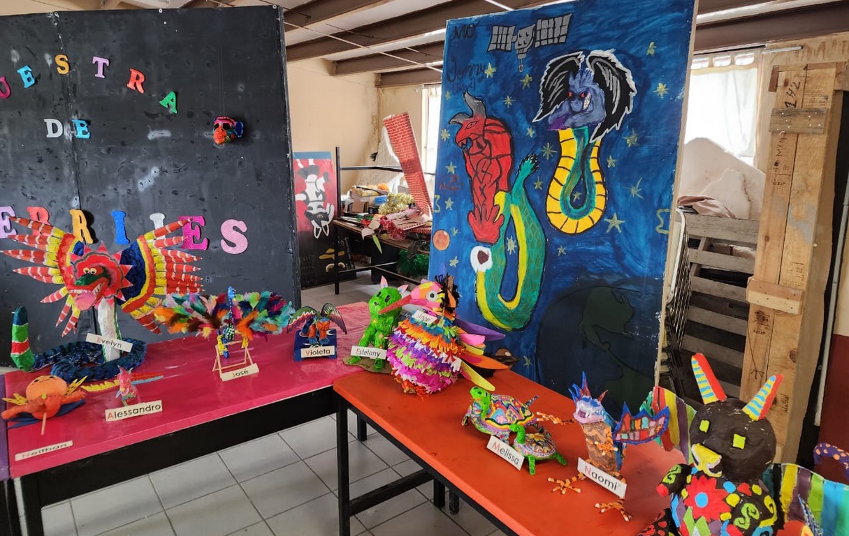 Con el proyecto “Alebrijes: identidad cultural de mi localidad”, 62 niñas y niños de primer y segundo grado utilizaron la técnica de cartonería, como expresión plástica mexicana, para recrear un colorido y fantástico animal imaginario, pero basado en el conocimiento de su fauna local.