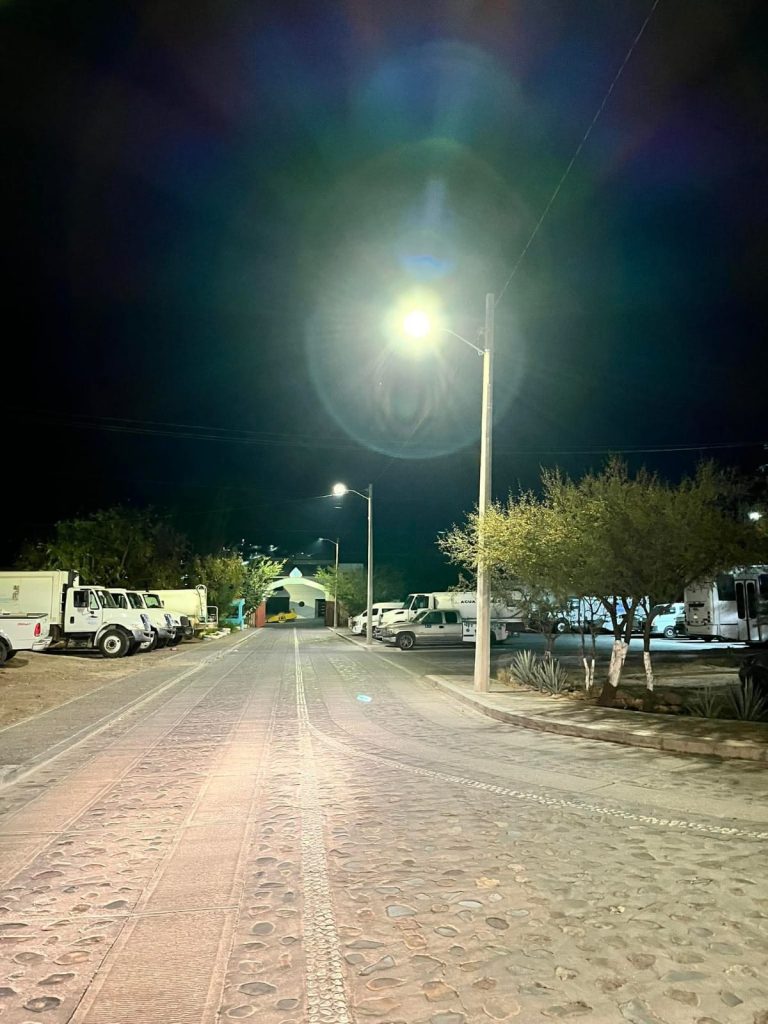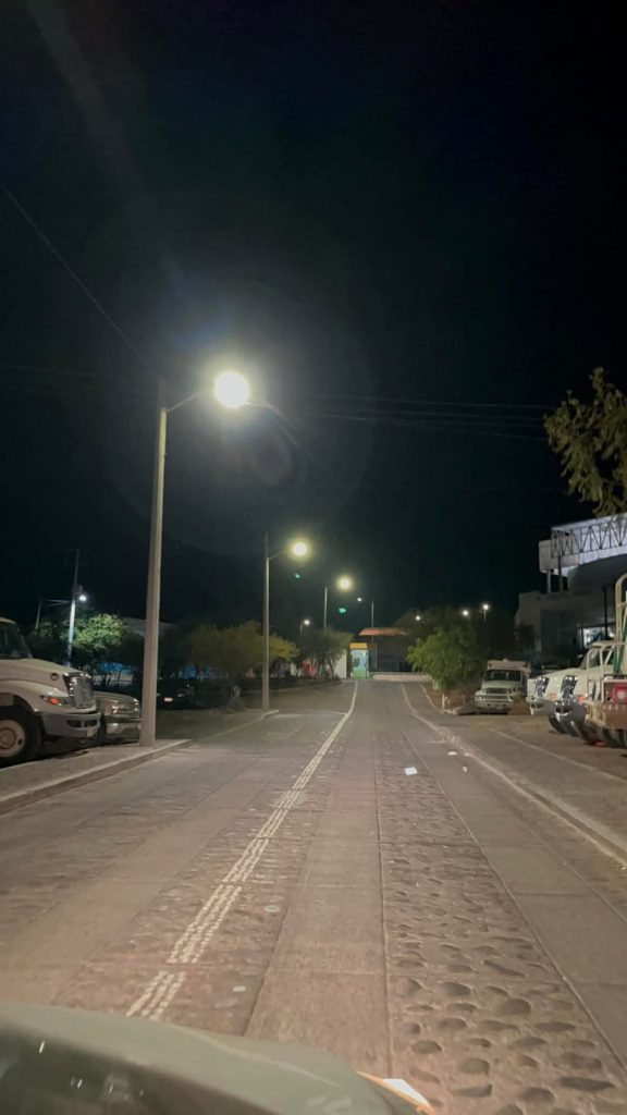 En esta ocasión, se realizó la instalación de luminarias en el Complejo Administrativo, específicamente en la calle de acceso, mejorando la iluminación, la seguridad y para el aprovechamiento de los espacios públicos.