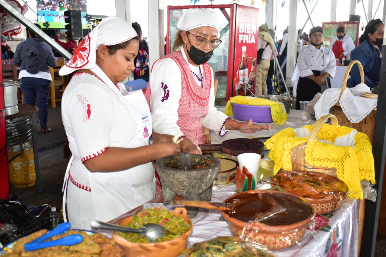 Las cocineras -provenientes de 20 municipios de los 4 Estados- dejaron un buen sabor de boca a los asistentes con la preparación de platillos como: tamal hnahnü, caldo de rata de campo, pipián verde otomí, caldo capón, chile en Nogada, mole de olla, penca rellena, gorditas, cecina con xoconostle, tamales de acelga, dulce de camote, peras al buñuelo, largas, pay de calabaza, pambazos, entre otros.