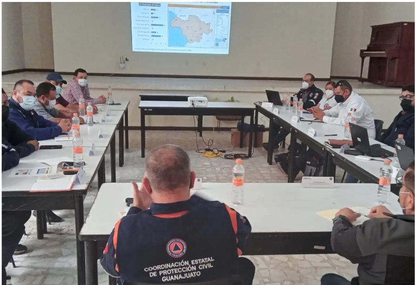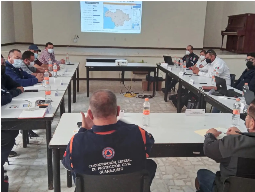 La Secretaría de Seguridad Pública del Estado, a través de la Coordinación Estatal de Protección Civil, realizó la Segunda Reunión Regional Ordinaria 2022 correspondiente a la zona Noreste de Guanajuato, abordándose temas referentes a los planes de contingencia y capacitaciones al personal de las Unidades Municipales de Protección Civil.