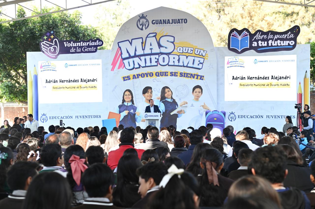 En las instalaciones de la Escuela Secundaria Técnica 16 de Dolores Hidalgo Cuna de la Independencia Nacional inició la entrega de uniformes deportivos para estudiantes de nivel secundaria en el Estado de Guanajuato, con el objetivo fortalecer la equidad educativa y apoyar la economía familiar.