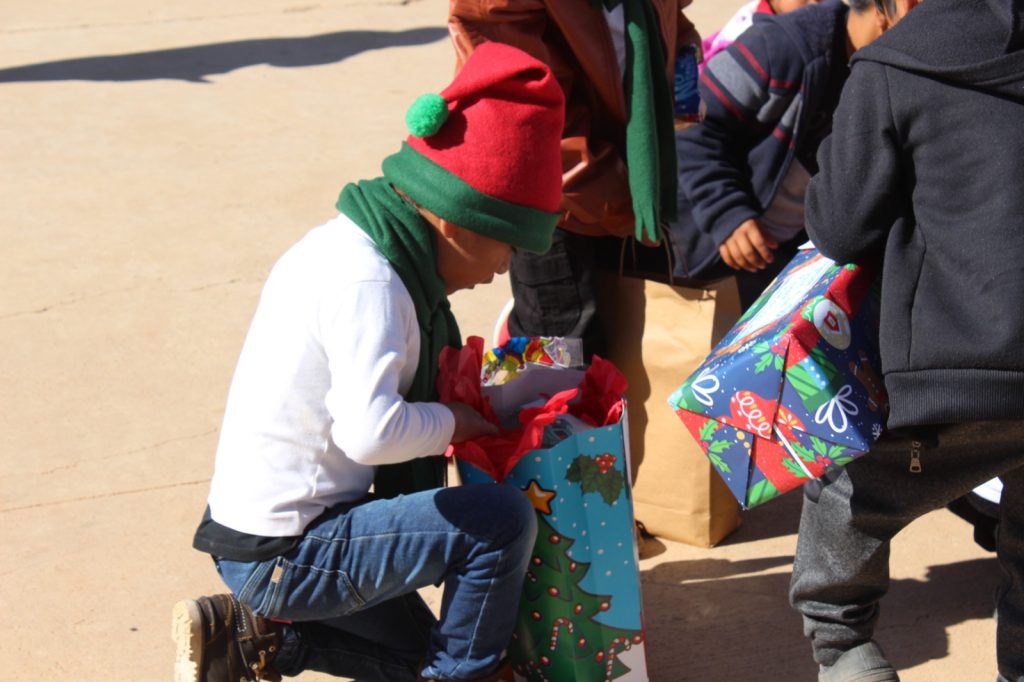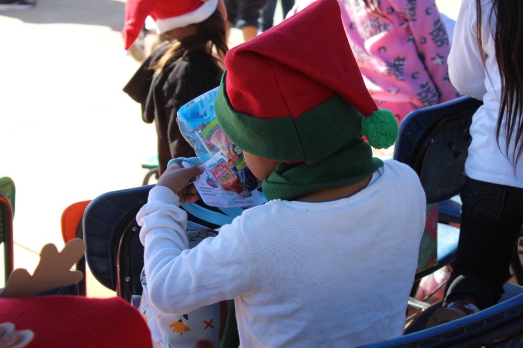 San Diego de la Unión/Dolores Hidalgo Con gran entusiasmo, niños migrantes recibieron al personal de la delegación Regional de Educación I Norte, para pasar un rato de alegría, amor y paz, además de convivir y recibir juguetes.