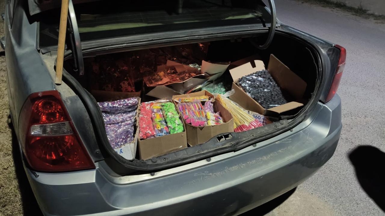 El hecho se registró durante un recorrido sobre la calle Prolongación Abasolo, en el camino a la localidad de El Jaralillo, cuando se detectó que desde un vehículo Chevrolet Malibú estaban vendiendo la pirotecnia a menores de edad.