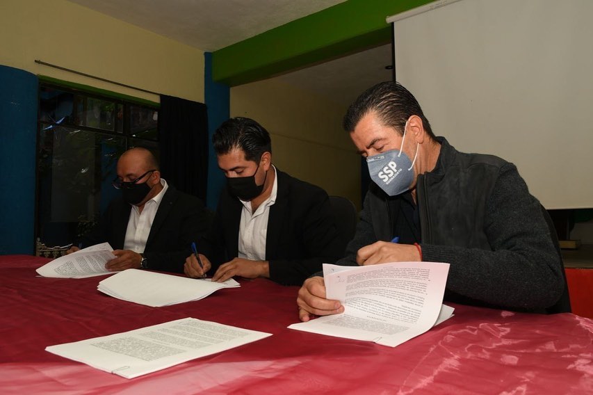 La firma de estos convenios se llevó a cabo este día en las instalaciones de la Casa de la Cultura de Doctor Mora, donde el titular de la Secretaría de Seguridad Pública del Estado, Alvar Cabeza de Vaca Appendini, el alcalde Edgar Javier Reséndiz Jacobo, así como Leonardo Alfonso Vázquez Ríos, Secretario del Ayuntamiento, signaron dichos convenios.